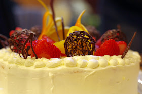 ケーキは、事前に予約してたのもあって、オール手作り。スポンジはしっとりしてるけど、ふわっと感もあり、クリームは濃厚でありながら甘さ控えめでさっぱりめ、上に乗っているイチゴはケーキにあう甘すぎず酸っぱすぎずのナイスイチゴw チョコレートの細工も全部手作りで、見応えもバッチし。みんな、べた褒めでした。マジ旨い。