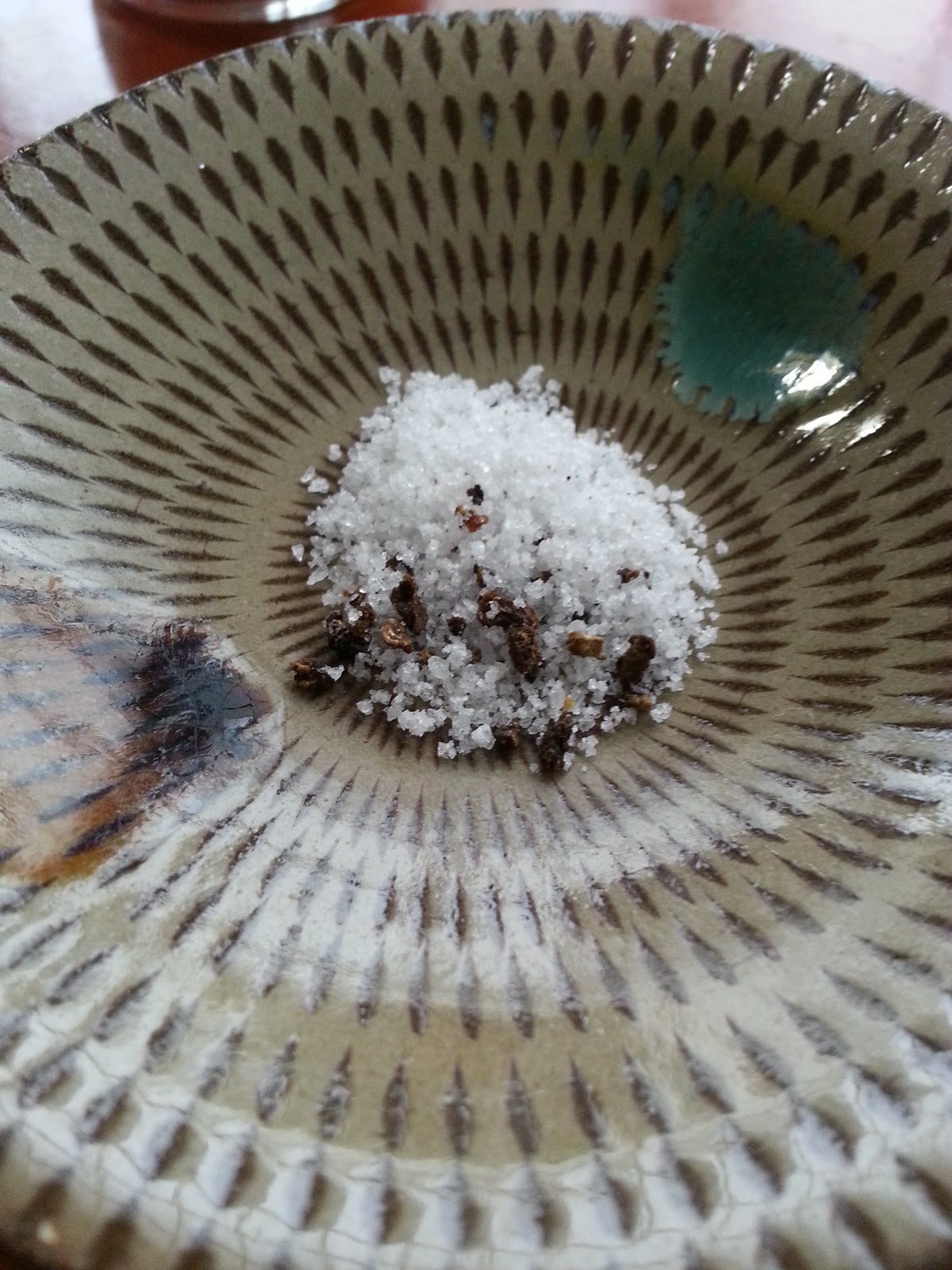 ちなみに、豚肉自体に味があって、衣の味は殆どしないため、お店ではソースがありません。代わりに岩塩が置いてあります。さらに運が良いのか、お店の方のご好意で、普段は出してないトリュフ入り塩を出して頂きました。トリュフの香りが若干残ってた衣の油臭さを消してより一層トンカツを美味しく頂けます。