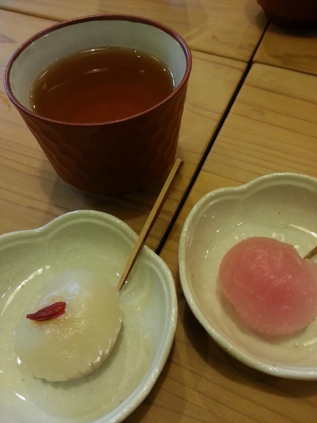 | 赤いのは梅?味の和菓子で美味しかった |