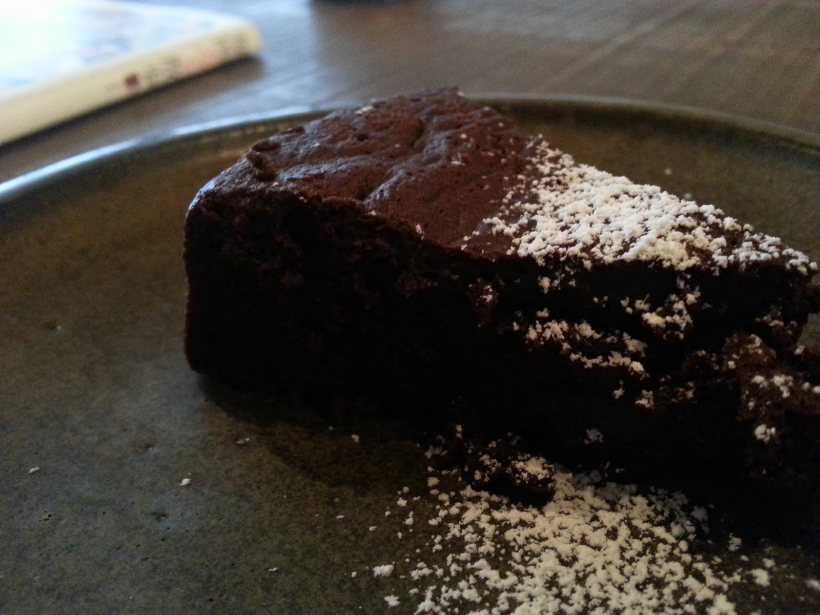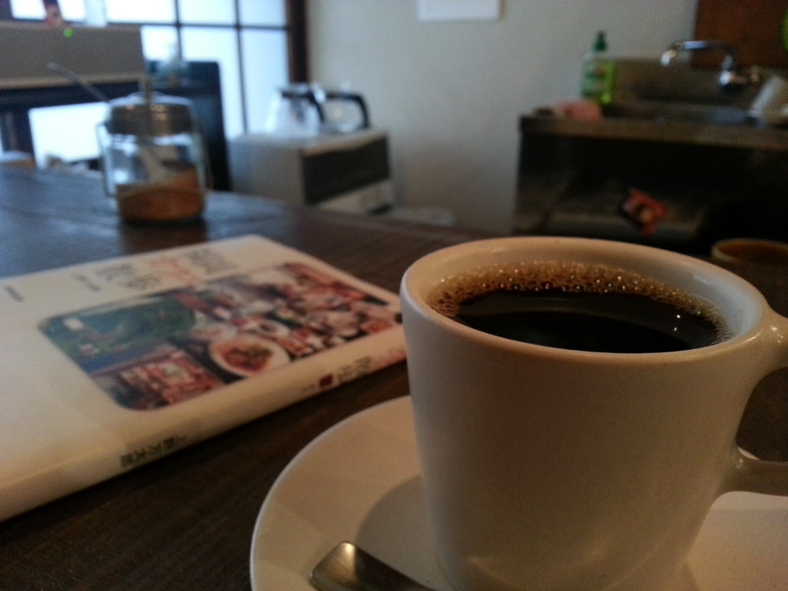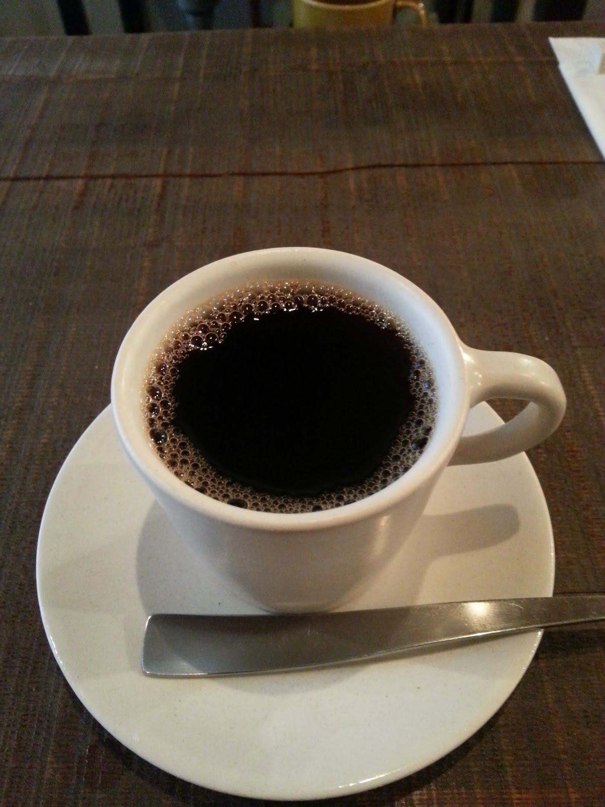 ここのコーヒーは、久留米にある「サンポカフェ」さんの豆を使用している。ちょっと濃いめのコーヒーだが、一緒に頼んだガトーショコラがとろけるような柔らかさで、チョコレートが濃い。濃いめのコーヒーが良く合う味だ。