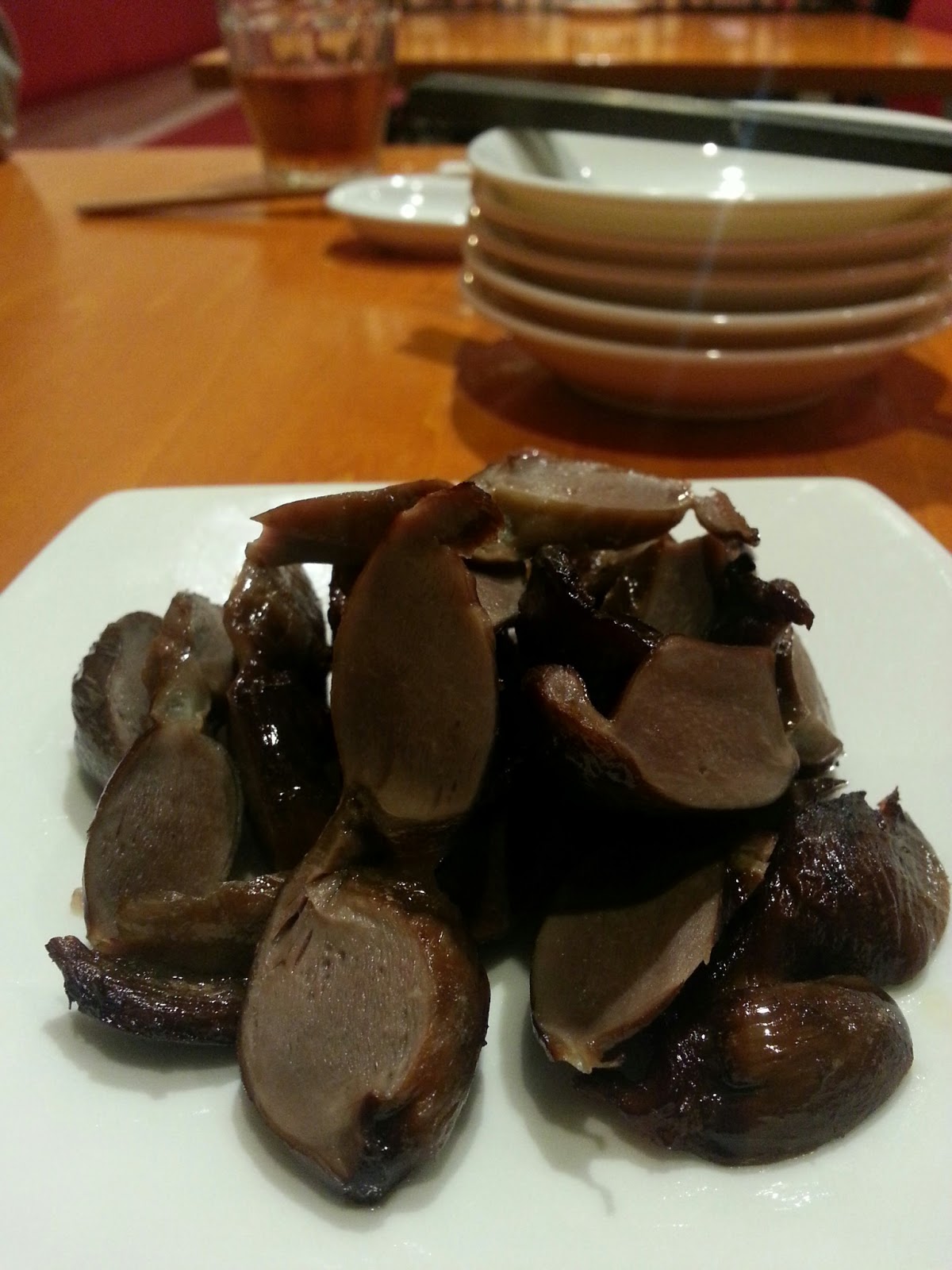 | 砂ずりの燻製、燻製の香り高い一品です。 |