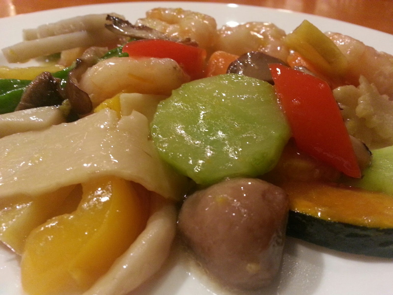 海老の柚子風味炒め、唐揚げ、鹿児島産骨付きトンポーロー、ラムキーマカレー肉マン、回鍋肉、汁なし担々麺、砂ずりの燻製、海老団子、胡麻団子、それに白ご飯w