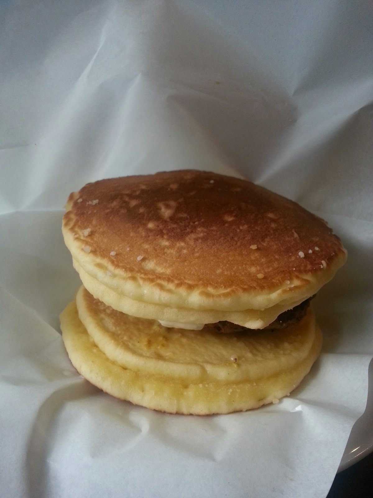 そのハンバーグをバンズではなく、ホットケーキでサンドしています。