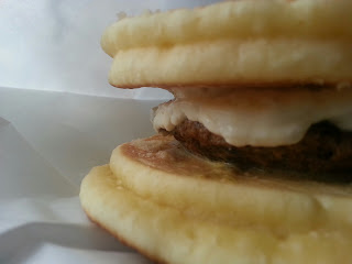 そのハンバーグをバンズではなく、ホットケーキでサンドしています。