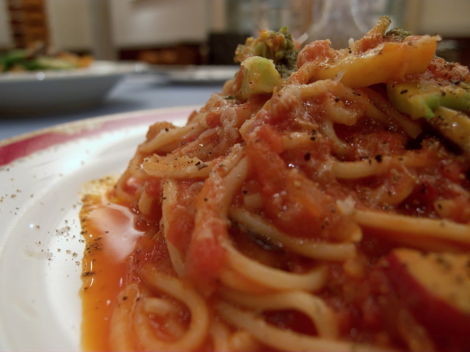 | トマトソースのパスタ、太麺ね |