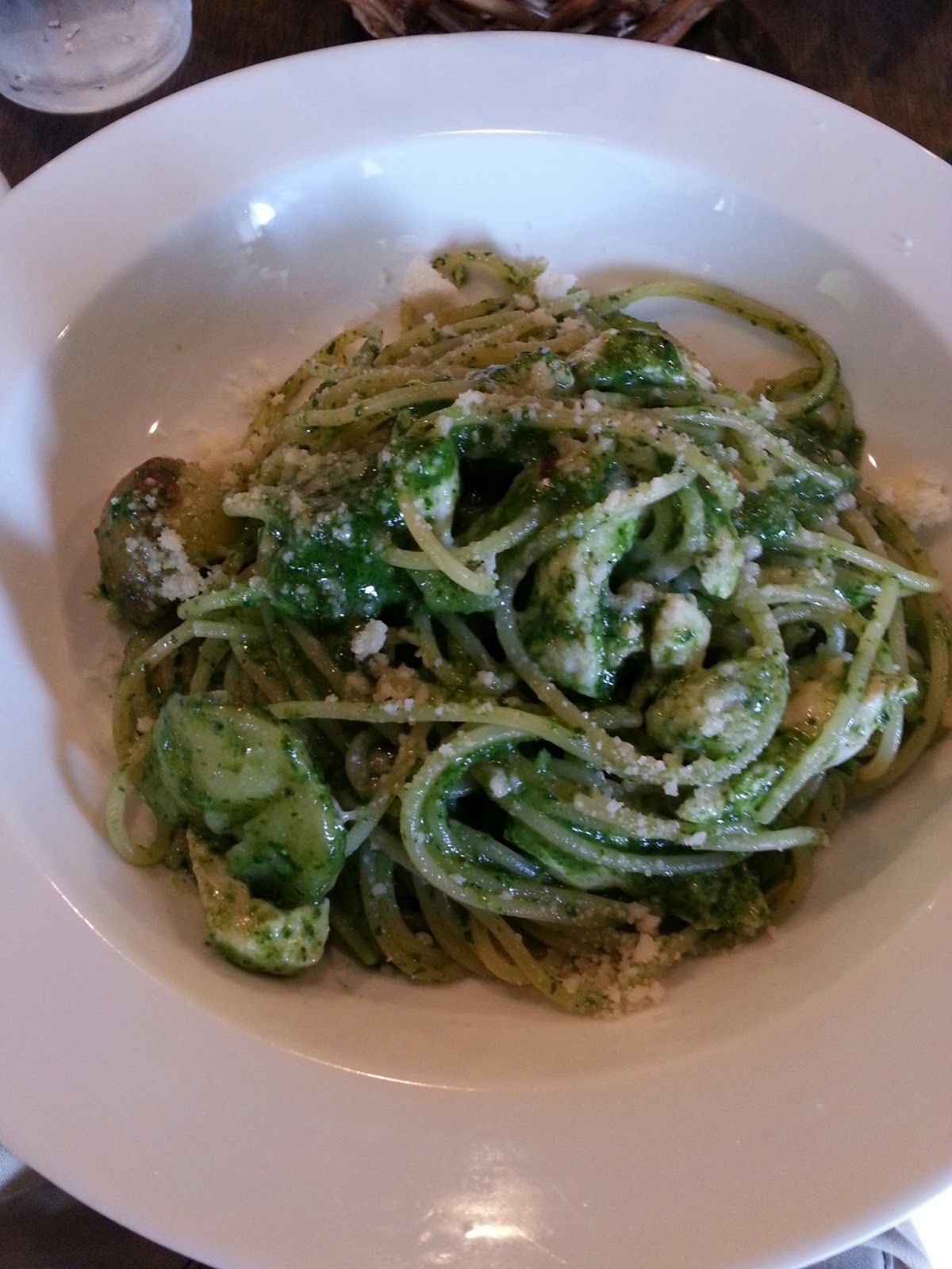 春菊のジェノベーゼ、どれだけの量を使っているのでしょうか?麺まで緑色ですw