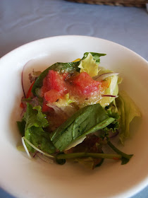 セットで出てくるサラダも自家農園で栽培された野菜、ドレッシングやパンなども自家製です。デザートのソルベも、もちろん自家製。