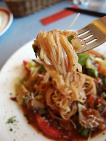 野菜がたっぷりで、器も冷たく冷やされているので、暑い夏にぴったりのパスタです。