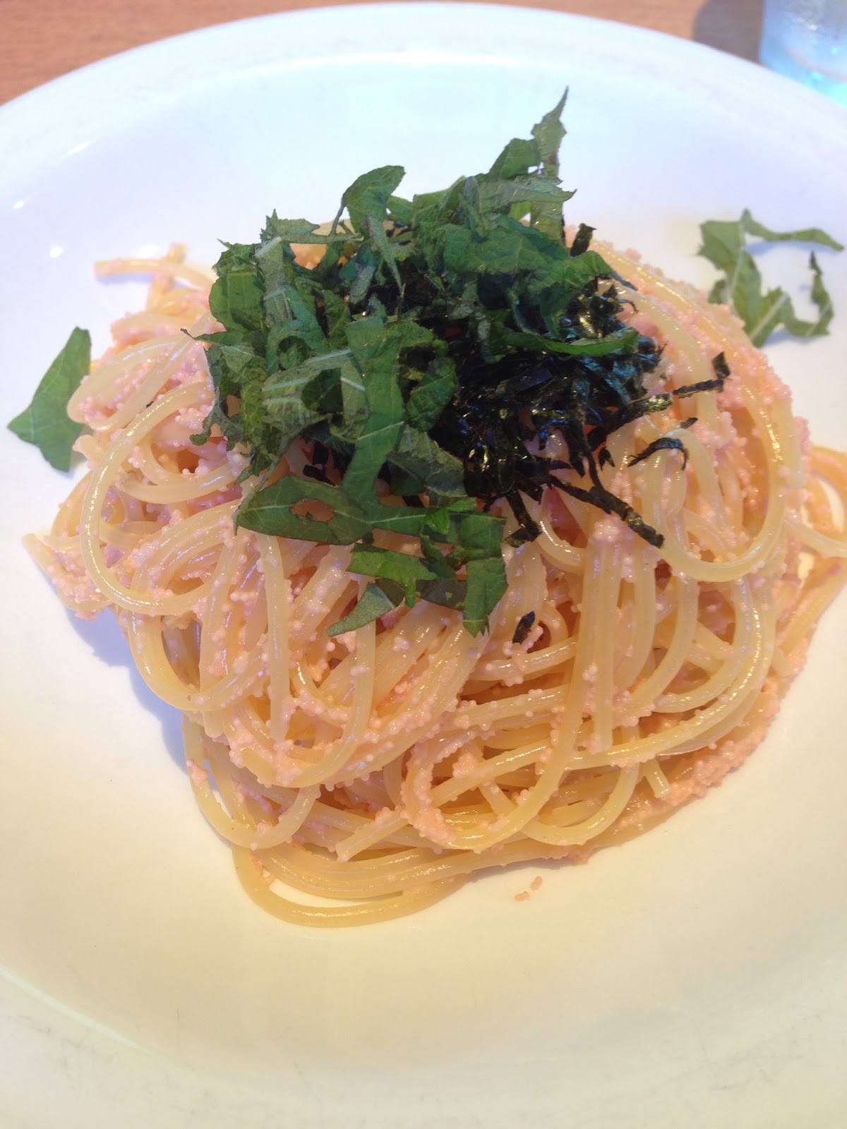 この日は明太子クリームパスタ、通常の一人前より少なめに盛られています。