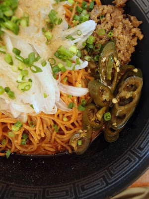 | 夏季限定 冷製汁なし坦々麺 白ネギどっさり、青唐辛子どっさり 自家製ラー油入り |