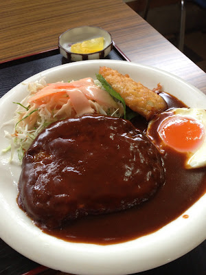 ハンバーグ定食です、これだけでは大きさがわかりませんが、なかなかの量です。