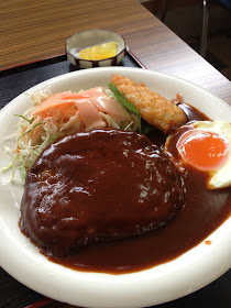 ハンバーグ定食です、これだけでは大きさがわかりませんが、なかなかの量です。