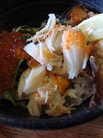 帆立は注文が入って捌き新鮮、カニの身も沢山入ってるし、いくらもたっぷり、鮭カマの塩焼きは少々塩が効いてるけど、鮭の旨さが凝縮しているカマでバリ旨。