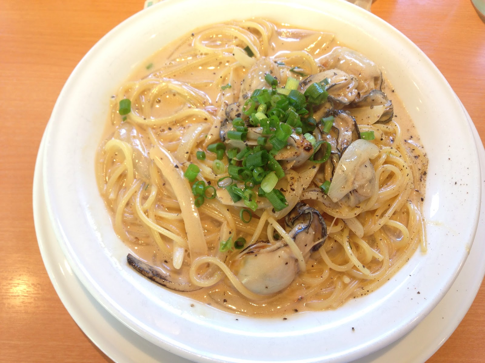 メニューを見ると、カキのオイスタークリームソーススパと書かれている。