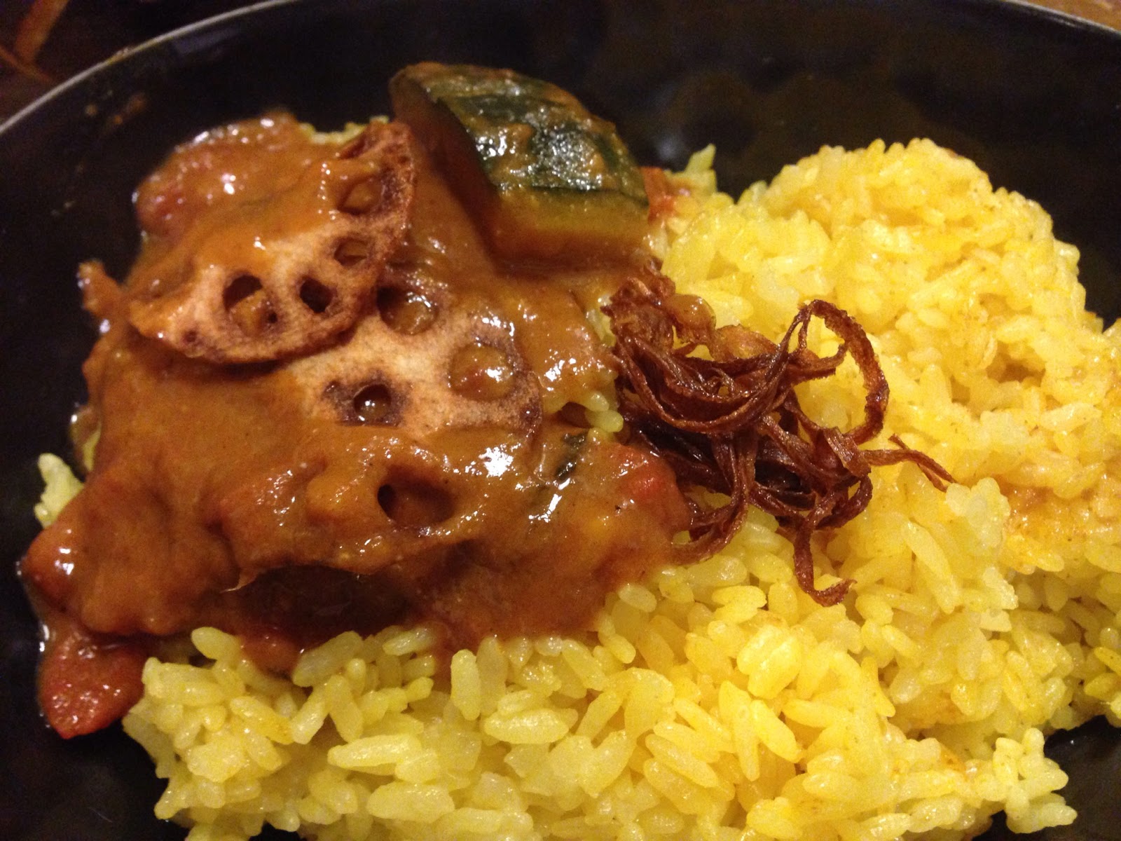 今週は、素揚げレンコンとかぼちゃのカレー、レンコンがあまり好きでない&辛いカレーに甘いかぼちゃは微妙と思っているワタクシですが、頼んでみました(笑)