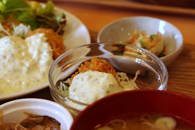 焼き牡蠣はありませんが、「かえる食堂 蓮」にも広島産のカキフライ定食が出てきました。(ちょっと前からですが...)