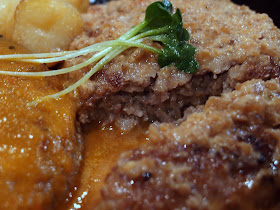 ハンバーグは、たしか豚肉ベースの合い挽きだったので、ジューシーな肉汁がたっぷりでかなり柔らかいハンバーグとなっています。