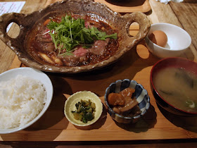 | 黒毛和牛のすき焼き定食980円、数に限りがあるのでお早めに♪ |