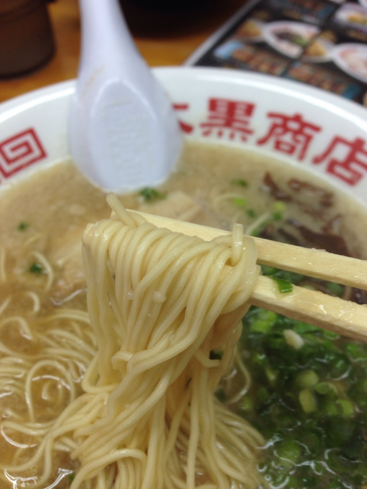 天神に本店を冓える「大黒商店」、博多とんこつラーメンに背脂が入ったドとんこつ系の博多ラーメンです。