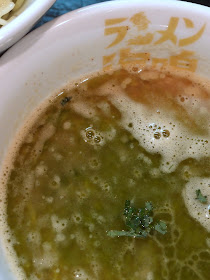 中洲店にあるラーメンジェノバのように、つけ麺のスープが緑色でやってきます。