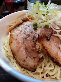 そのつけ麺は、魚介豚骨スープのみですがトッピングが2種類あります。
