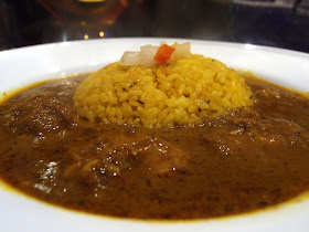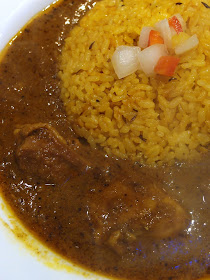 肝心のカレーは、スパイシーターメリックライスにマサラチキンカレーがかかったカレーで、ライスだけでも旨い(笑)