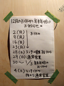 ※最後の方に「かえる食堂 蓮」の年末年始のお休みを掲載してるよ。