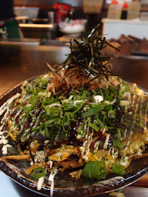 牡蠣の他に、豚肉エビ烏賊の全部入りでネギ乗せの焼そばも入ったモダン焼きです。