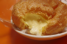 求肥は生で無く、こんがり焼きあがってるのでサクッもちっと不思議な食感、シュー自体が少し甘く感じるので、甘さを控えめにしたカスタードクリームが良く合います。