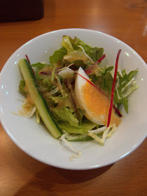 ランチメニューは、ハンバーグとカレーとオムハヤシ、それにサーモンフライと本日のパスタの5種類です。全メニューでサラダとライス(もしくはパン)が付いてきます。