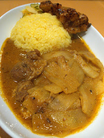 スパイスで炒めた大根と鶏肉のカレー、チキンカレーがベースになっているカレーでそこに大根が入っています。