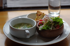こちらはセットメニューのサラダとスープと小鉢