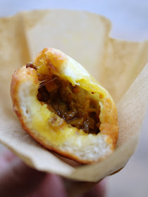 | 辛さ控えめでパンは揚げてあるけど、油っこくない。 包み紙はコーヒーペーパーフィルターでしゃれとー |