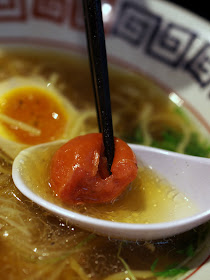 しかし「中るラーメン」が作る醤油ラーメンはそれだけでは終わりません。この醤油ラーメンに限って食べ方のススメなるものがあります。まずはそのままスープを召し上がって下さいとあり、次にブラックペッパーを入れ引き締まったスープを召し上がって下さい。と、最後にラーメンと一緒に出てきた梅干しをレンゲでほぐして召し上がって下さい。とあります。全部で三種類の味が食べれます。