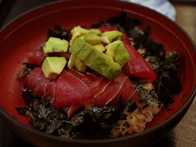 もちろん、焼いてない普通のマグロ丼(アボカド入りやけど)もあって、そちらも頂きました。旨いね。やっぱりマグロは生やねw