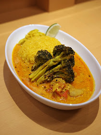 | 特別に作って頂いた生姜入りヨーグルトチキンカレー 今回もタンドリーブロッコリーをトッピング |