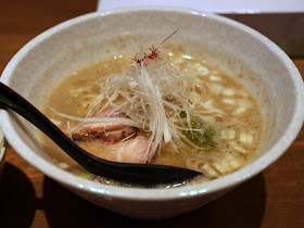 塩ラーメンも好きなんですが、ここではいつも白鶏湯ラーメンを頼みます。