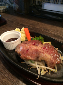 イベリコ豚のロースステーキ、肉は柔らかくジューシーでバルサミコ酢との相性も良い。