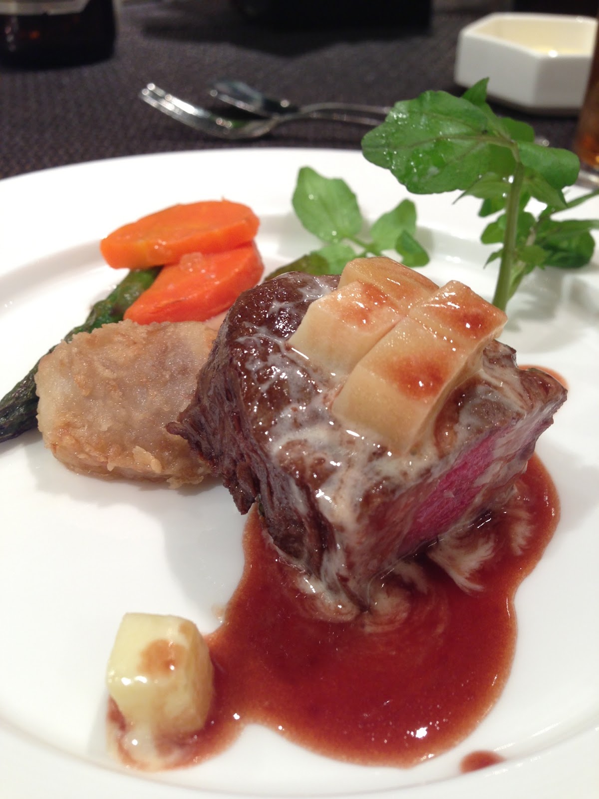 - ヴィアンド:やわらか牛フィレ肉とおいしいポテトのクリーム、筑後果実の入ったフルーティーな赤ワインソース