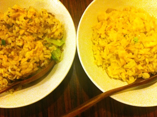 炒飯はミンチ入りが濃い味で、エビ入りは比較的あっさりめでした。